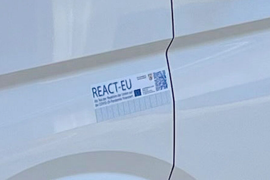 * Zuwendungen des Landes NRW und der europäischen Union. Förderung im Rahmen der Richtlinie zur Förderung von emissionsfreien Nutzfahrzeugen (REACT-EU) unter Einsatz von Mitteln aus dem Europäischen Fonds für regionale Entwicklung (EFRE) 2014-2020 „Investitionen in Wachstum und Beschäftigung“ in der Aufbauhilfe für den Zusammenhalt und die Gebiete Europa